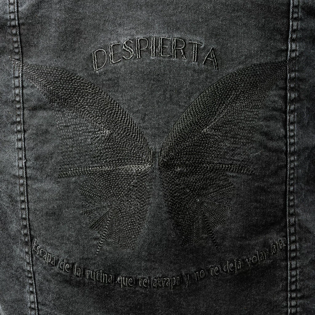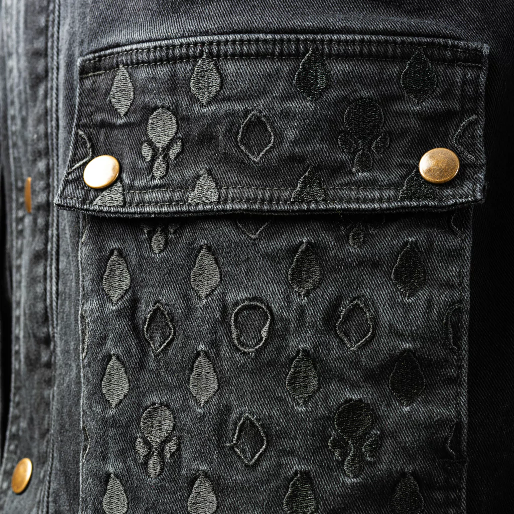 Esta chaqueta de gabardina negra tiene un corte holgado y elegante, con bolsillos fuelle bordados con monograma BTTN en el frente y bordado personalizado en la espalda a tono, que le dan un distintivo sutil a esta prenda versátil. Ideal para ocasiones formales e informales. Cuenta con pantalón a juego.